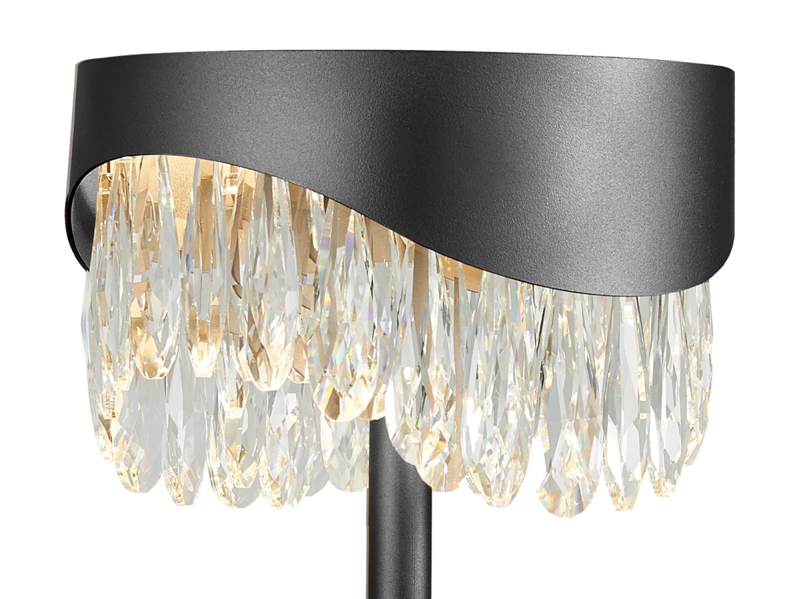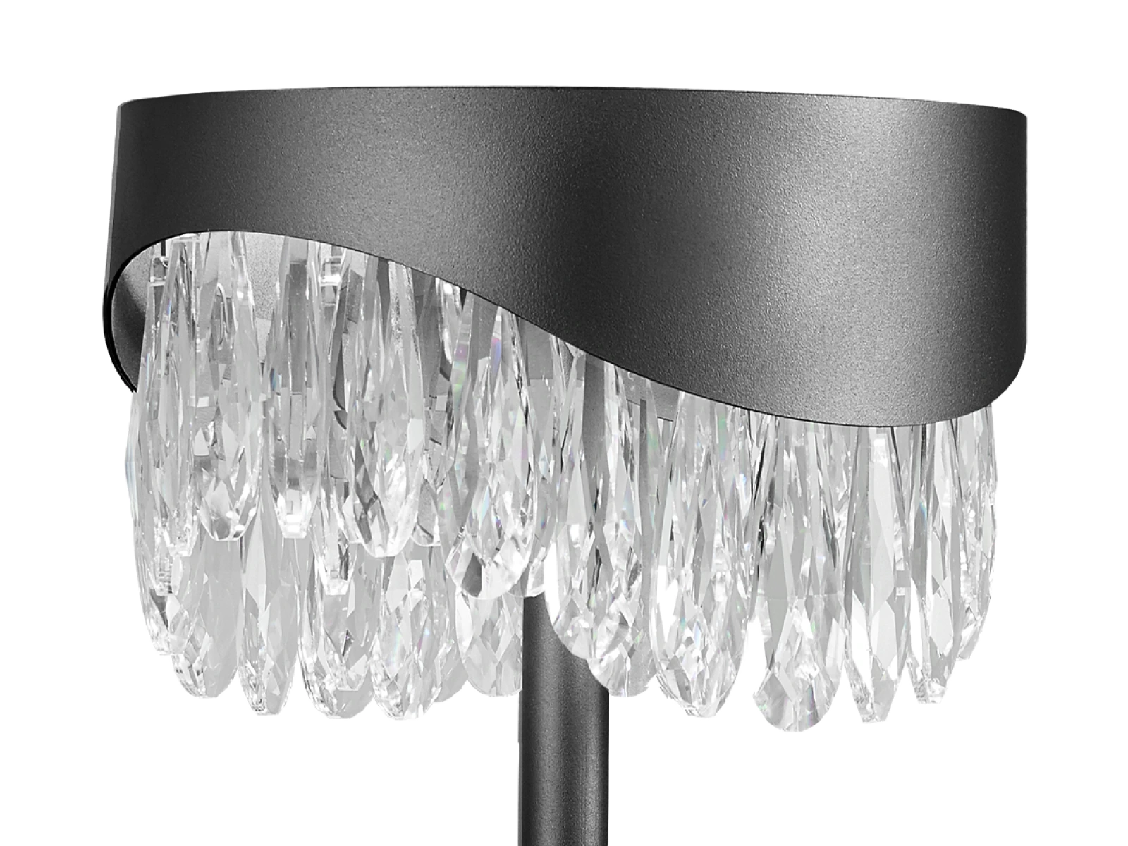 Svietidlo je vyrobené z odolného nerezového kovu s prémiovou úpravou povrchu, pričom jeho dizajn dopĺňajú precízne brúsené kryštály podporujúce odraz a lom svetla. Technológia spracovania zabezpečuje stabilitu materiálu a jeho dlhodobú estetiku.