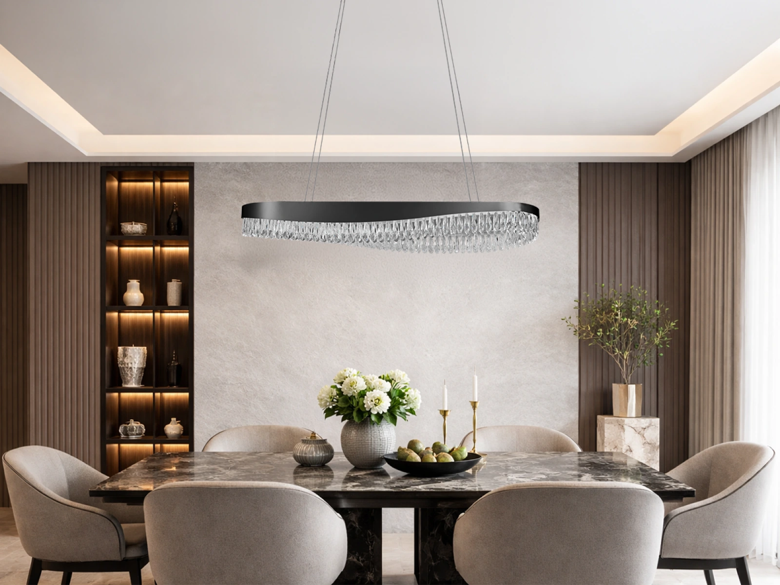 Svietidlo je zhotovené z kvalitného nerezového kovu s prémiovou povrchovou úpravou a doplnené o precízne brúsené kryštály, ktoré umocňujú odraz aj lom svetla. Moderná technológia spracovania zabezpečuje dlhodobú stabilitu materiálu a zachovanie jeho estetického vzhľadu.