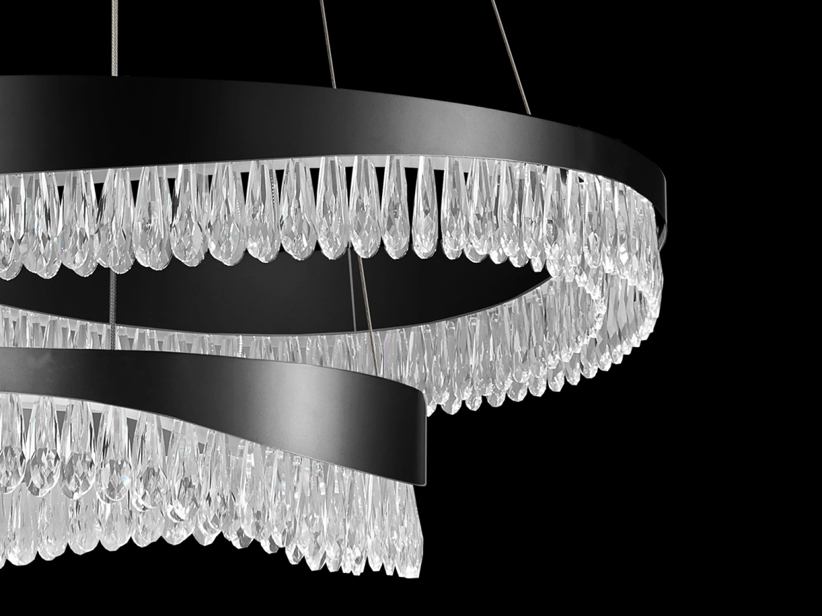 Svietidlo je skonštruované z kvalitného nerezového kovu s prémiovou úpravou povrchu a doplnené o precízne brúsené kryštály, ktoré vytvárajú výrazné svetelné efekty. Technológia spracovania garantuje dlhodobú odolnosť a zachovanie vzhľadu.