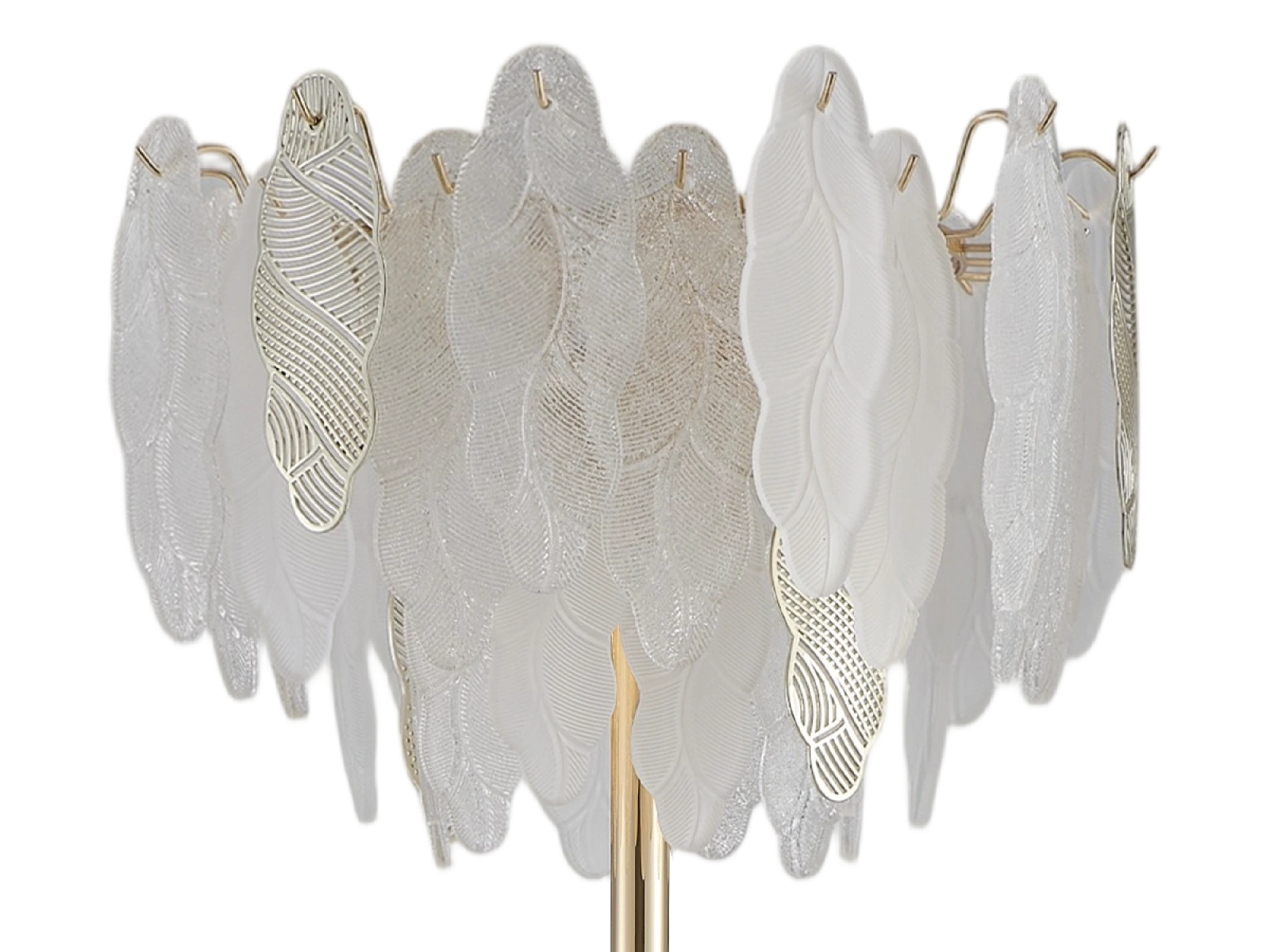 Jemná štruktúra sklenených prvkov v kombinácii s dekoratívnymi kovovými detailmi podčiarkuje luxusný a sofistikovaný charakter tejto kolekcie.