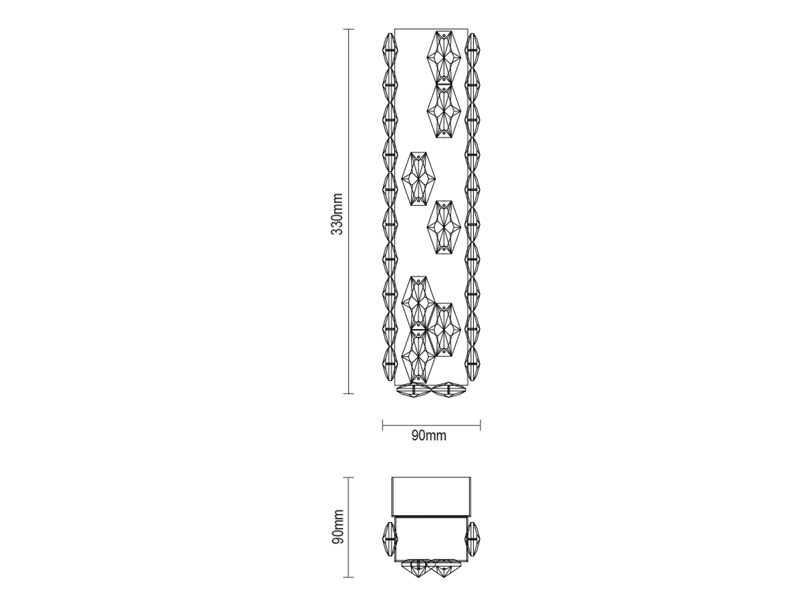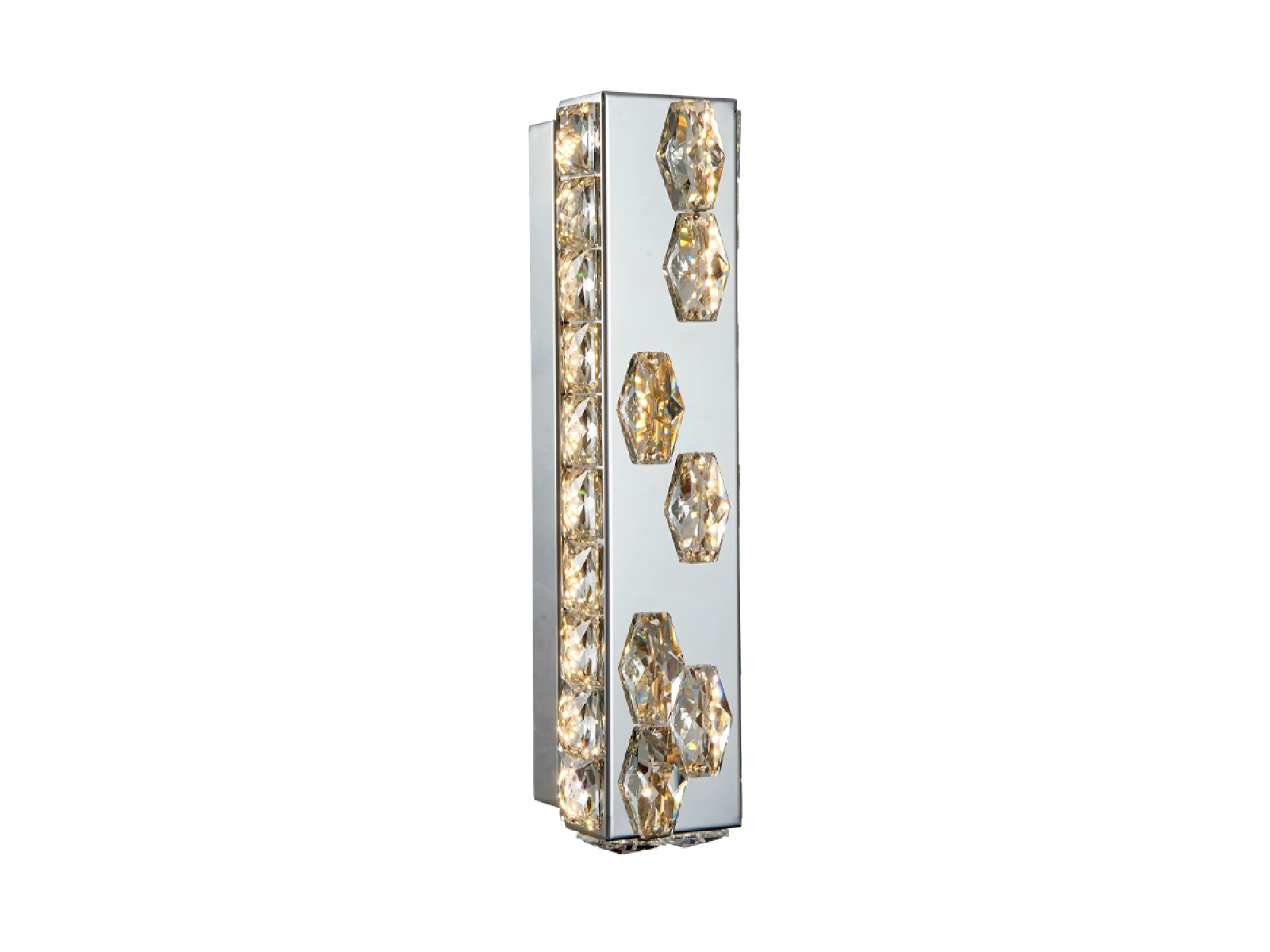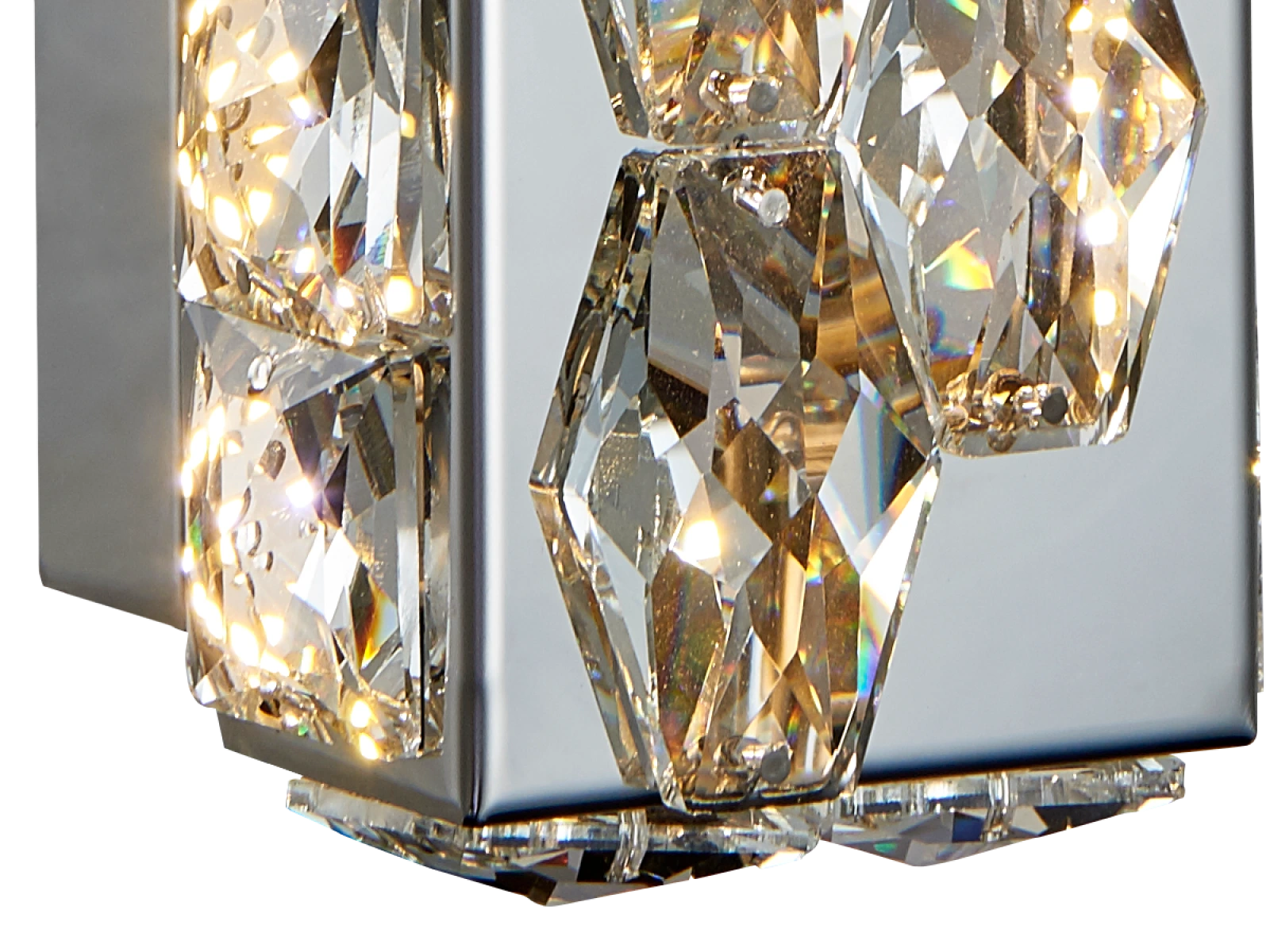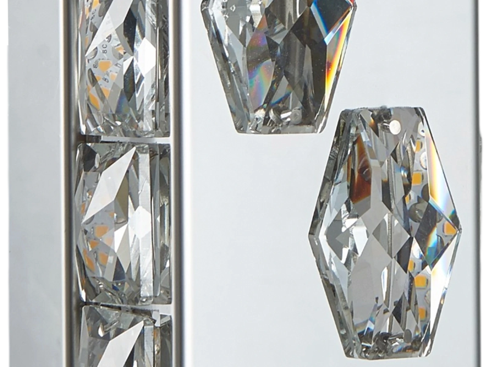 Svietidlo je vyhotovené z odolného nerezového kovu s chrómovým povrchom a doplnené o detailne brúsené kryštály, ktoré zvýrazňujú svetelné efekty. Pokročilé spracovanie materiálu zaručuje jeho dlhodobú stabilitu a estetickú kvalitu.