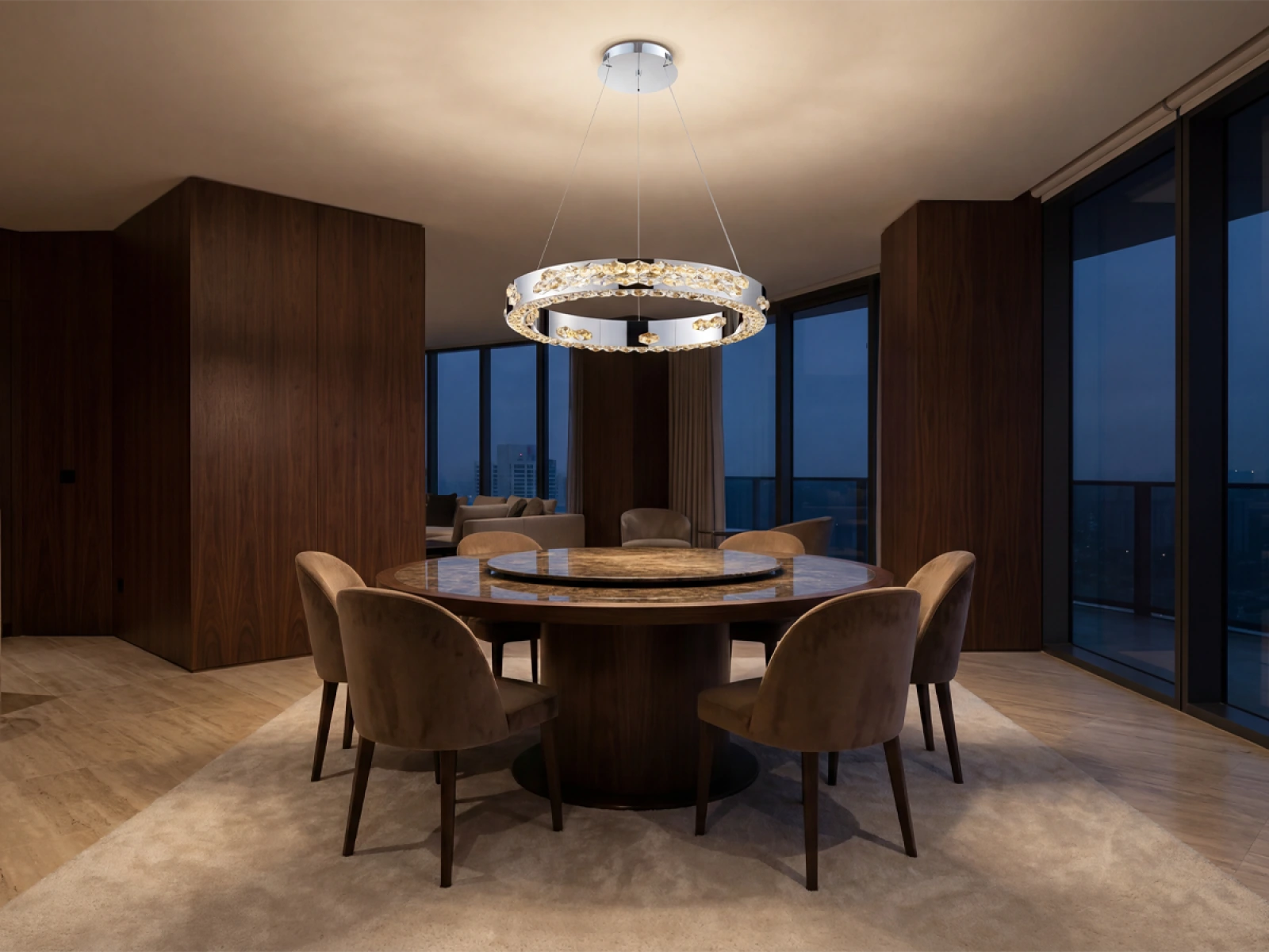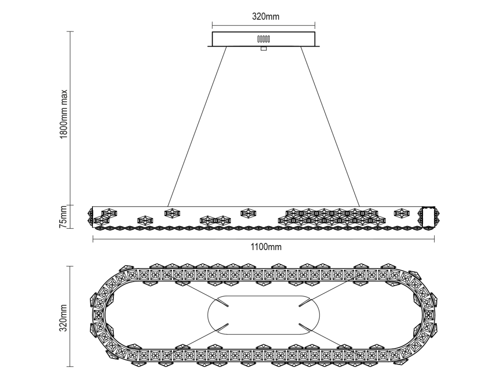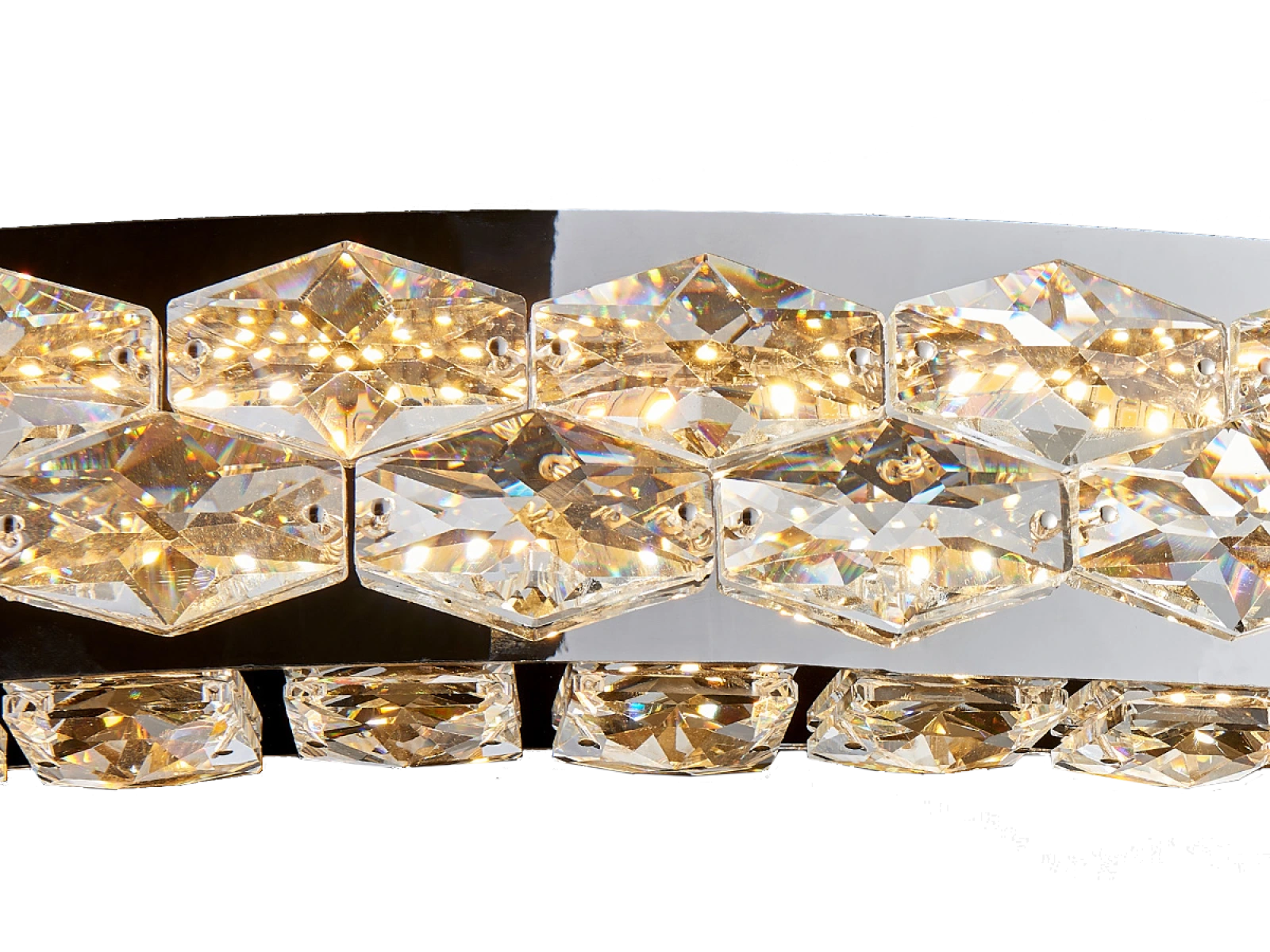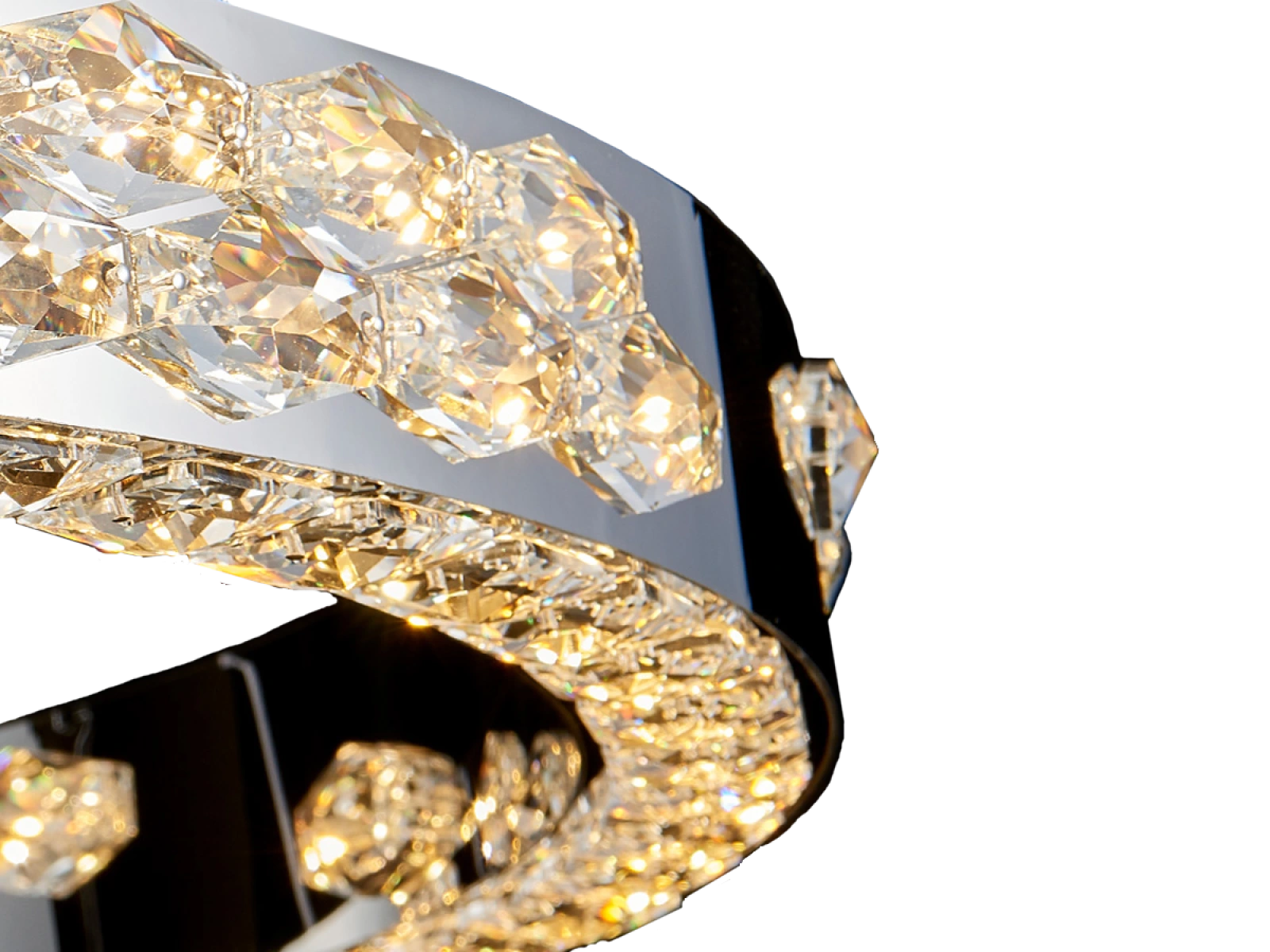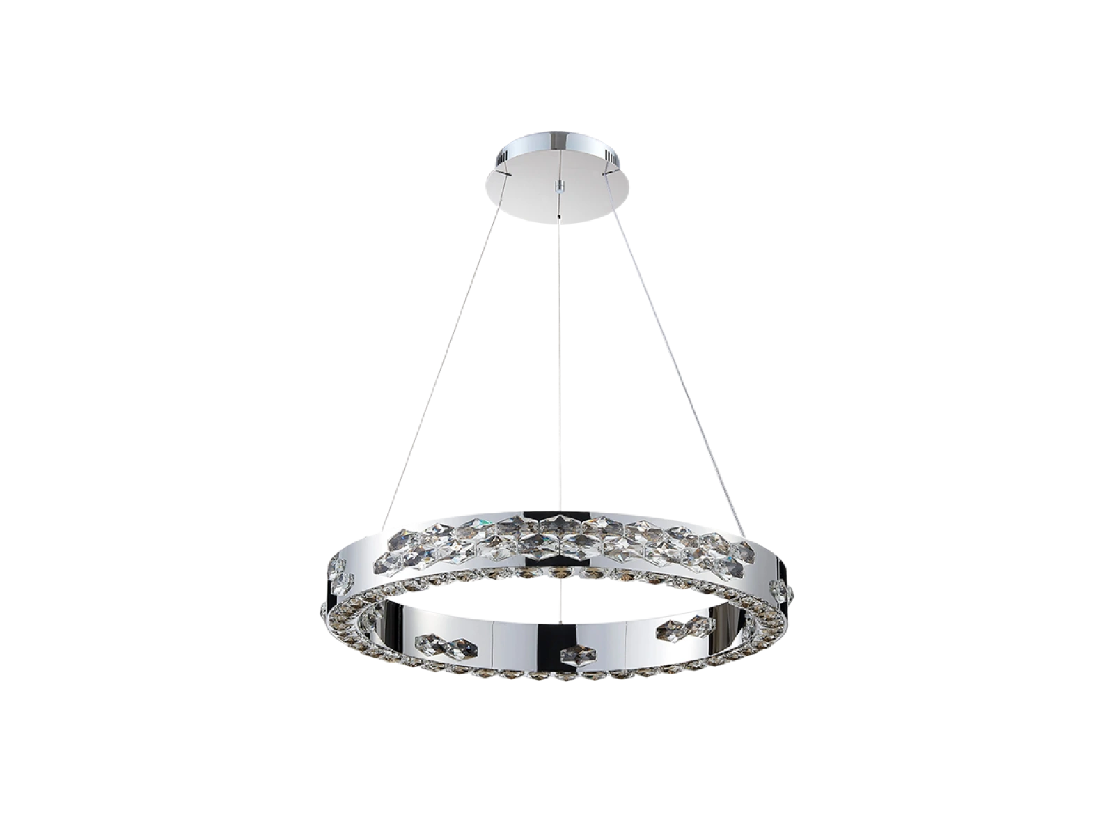 Základ svietidla tvorí vysokokvalitný nerezový kov s chrómovou povrchovou úpravou, doplnený o detailne brúsené kryštály, ktoré zvýrazňujú svetelný efekt. Vďaka pokročilej technológii spracovania si materiál zachováva svoju stabilitu aj vzhľad.