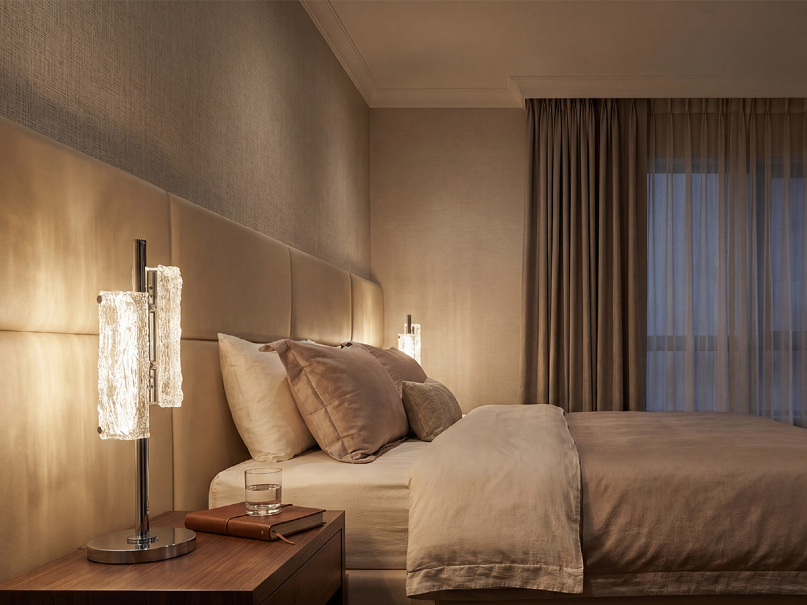 Svietidlo je vyrobené z vysokokvalitného nerezového kovu s chrómovou povrchovou úpravou, ktorá zabezpečuje dlhodobú odolnosť, stabilitu a luxusný vzhľad. Sklenené prvky so štruktúrovaným povrchom inšpirovaným kôrou zabezpečujú rovnomerný a príjemný rozptyl svetla.