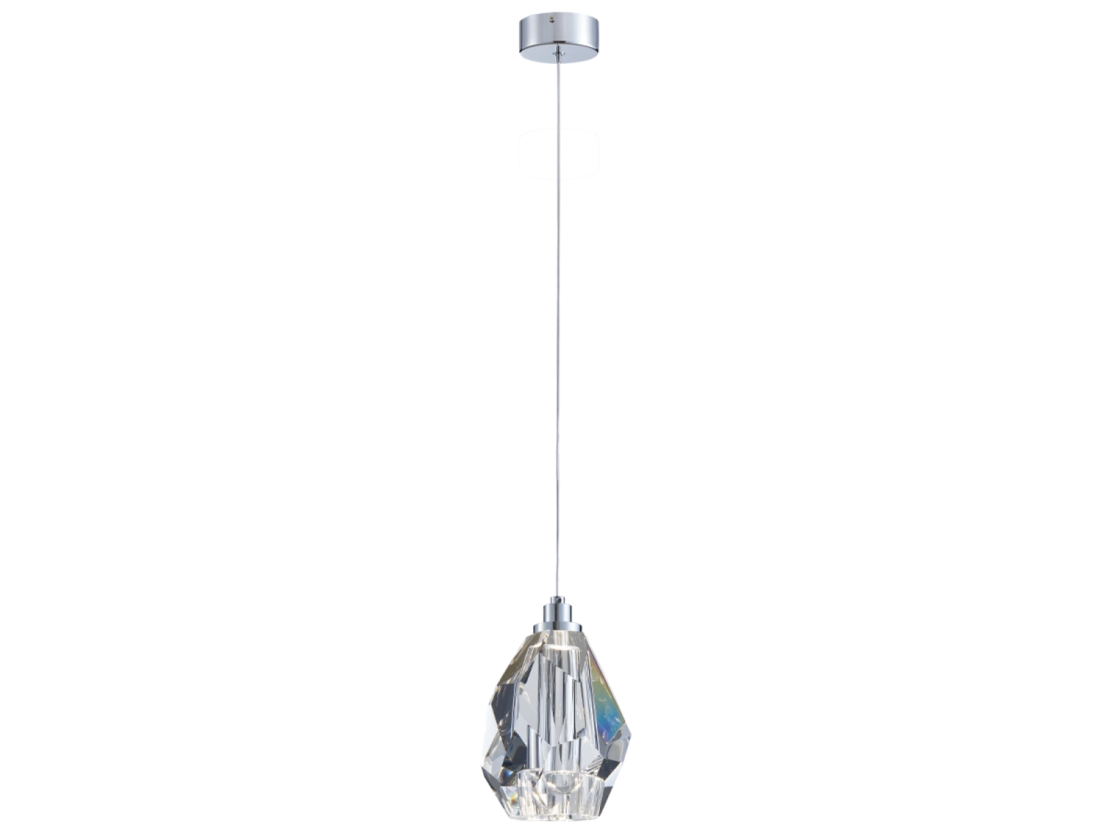 Konštrukcia svietidla je vyrobená z kvalitnej ocele s chrómovou povrchovou úpravou a doplnená o precízne brúsené krištáľové prvky s diamantovou štruktúrou. Tá vytvára jedinečný svetelný efekt a luxusný lesk v priestore.