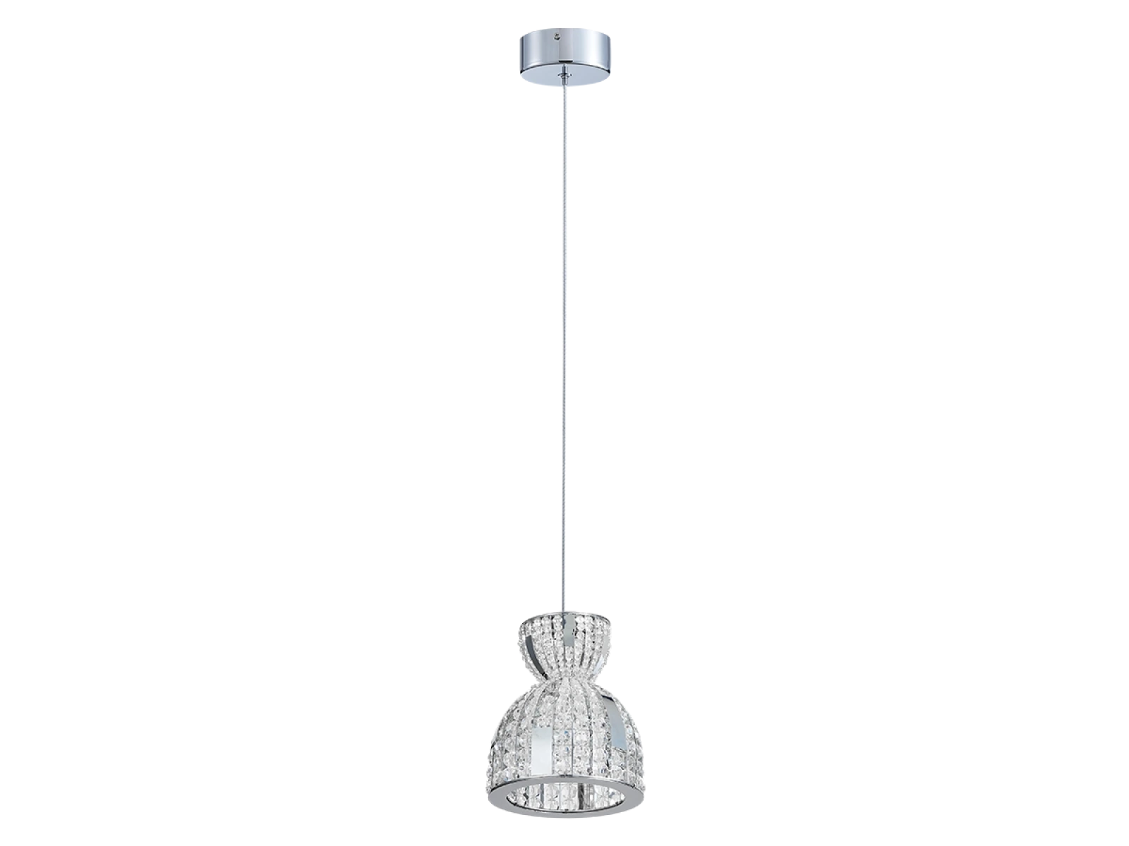LED závesné svietidlo značky VIZARDI zo série KATRIA zaujme elegantným tvarom a luxusným dizajnom s bohatými kryštálovými detailmi, ktoré vytvárajú pôsobivé svetelné efekty. Jemne tvarované tienidlo v kombinácii s lesklým chrómovým prevedením dodáva svietidlu nadčasový a reprezentatívny vzhľad.