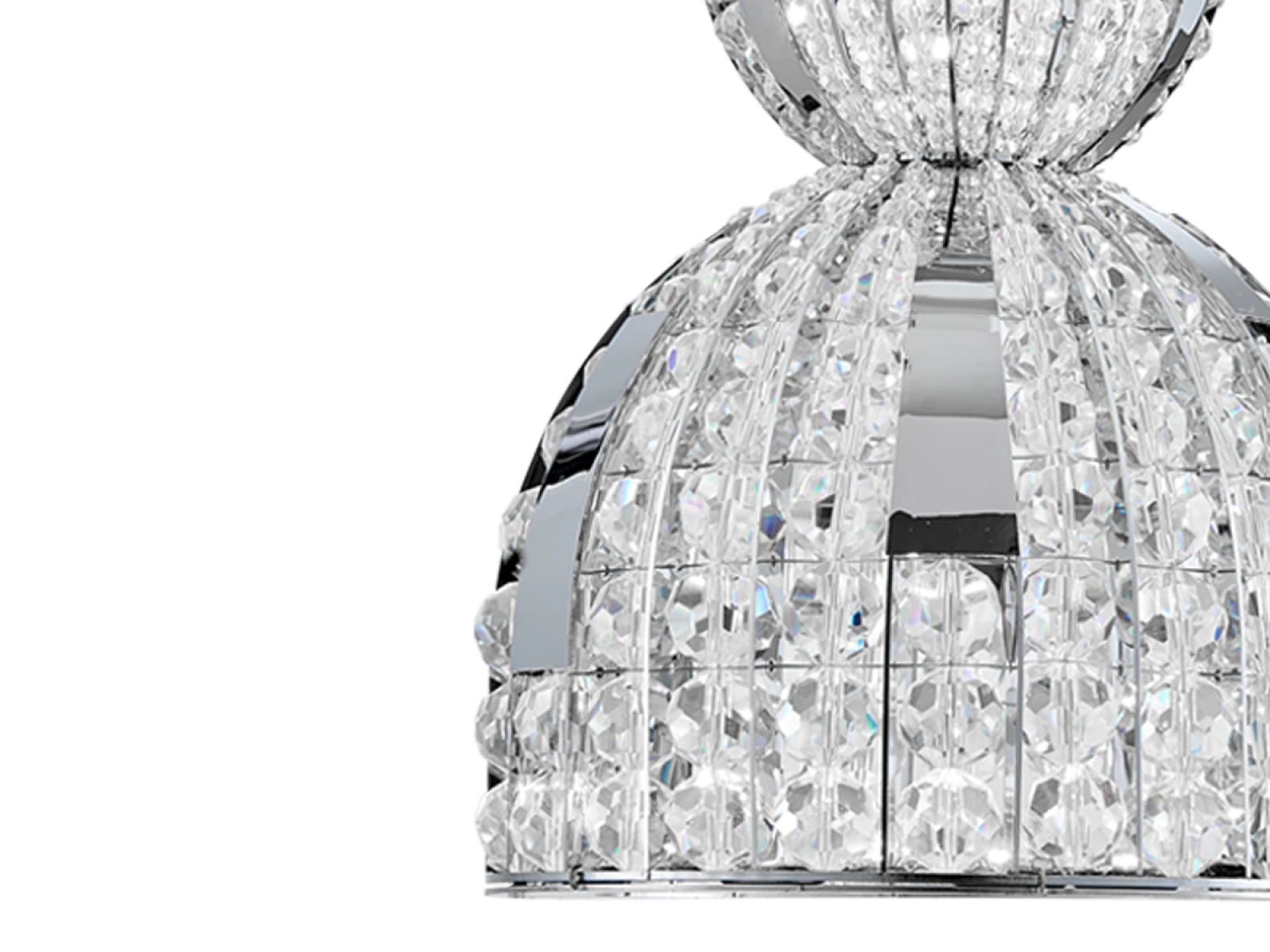 Konštrukcia je vyrobená z nehrdzavejúcej ocele a doplnená o brúsené kryštály, ktoré zabezpečujú intenzívny lom a odraz svetla. Vďaka kvalitnému spracovaniu si svietidlo zachováva svoj estetický vzhľad a stabilitu aj pri dlhodobom používaní.